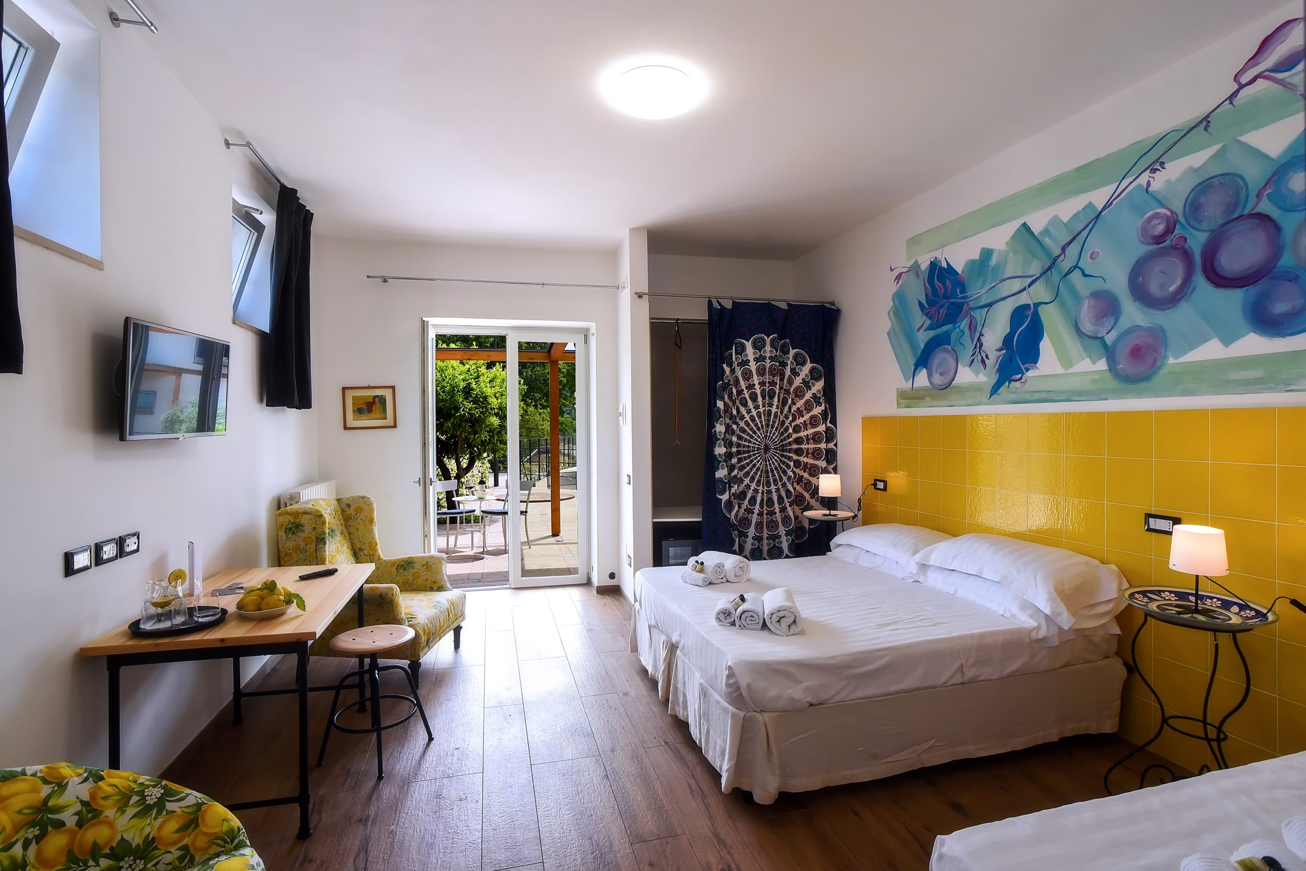 Un letto matrimoniale, due letti singoli e tanti piccoli dettagli che riflettono la passione per l’ospitalità e offrono una confortevole e perfetta vacanza familiare.