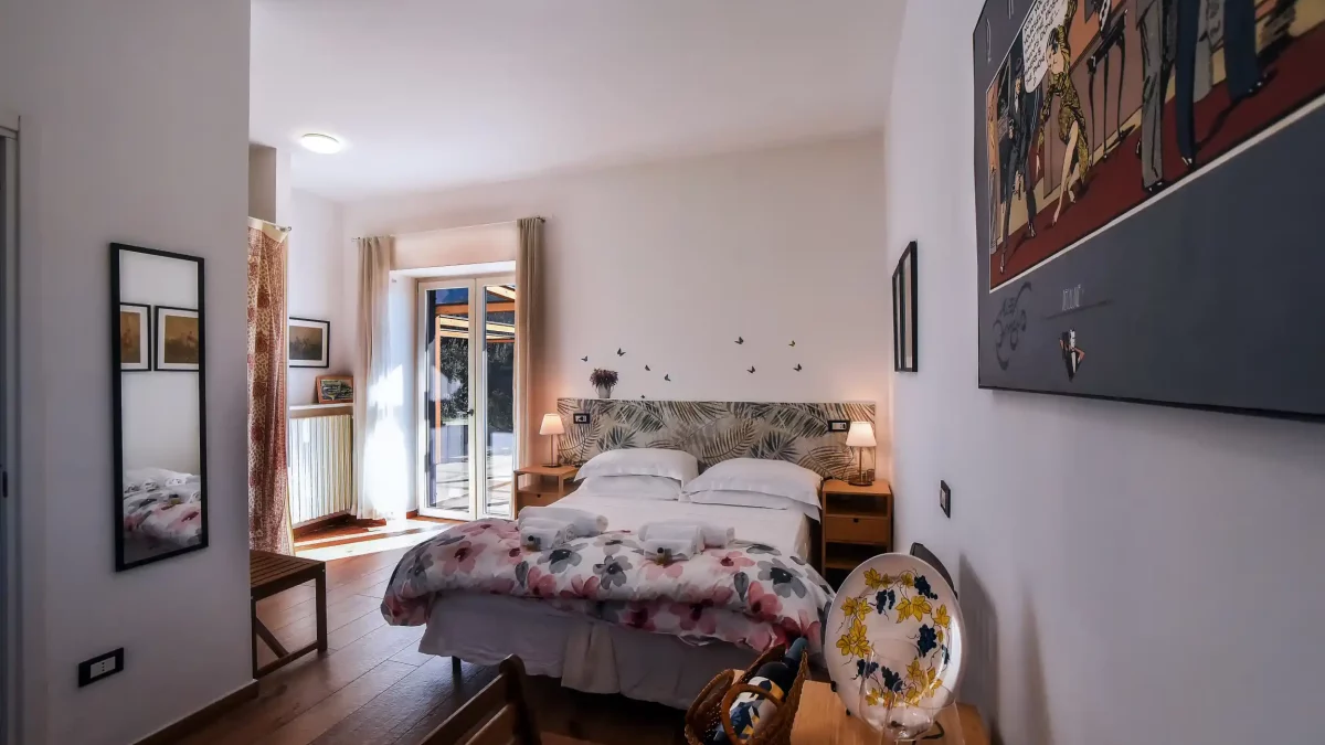 Capriglia offre un letto matrimoniale accogliente ed arredi che combinano estetica e funzionalità.