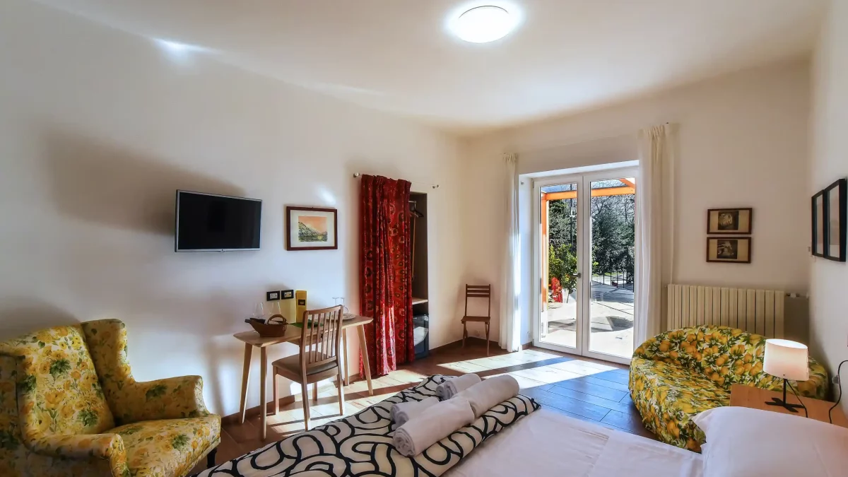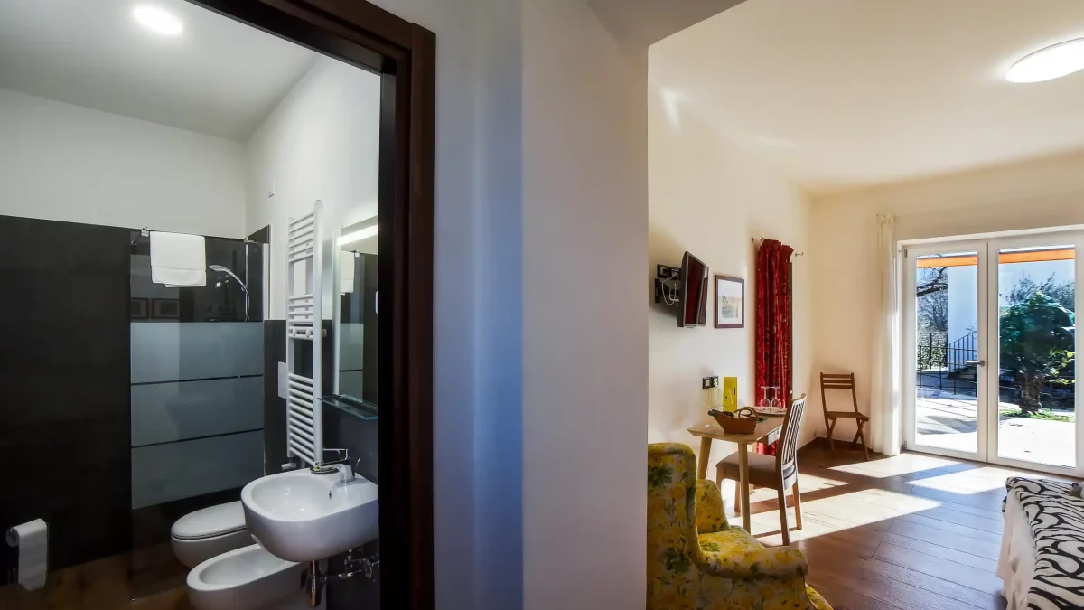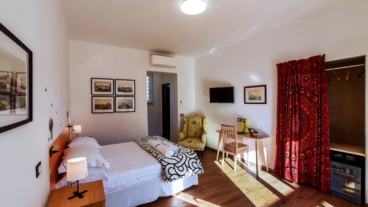 Un comodo letto matrimoniale fa della camera un rifugio perfetto per coppie o viaggiatori in cerca di relax. Completano il comfort un bagno privato moderno e accessoriato e connessione Wi-Fi gratuita.
